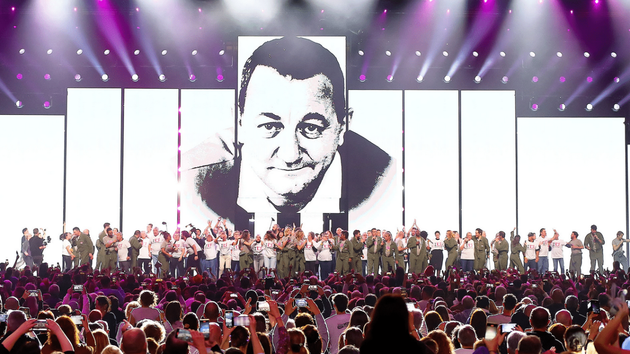 Alain Chamfort chute en regagnant les coulisses pendant le spectacle des Enfoirés