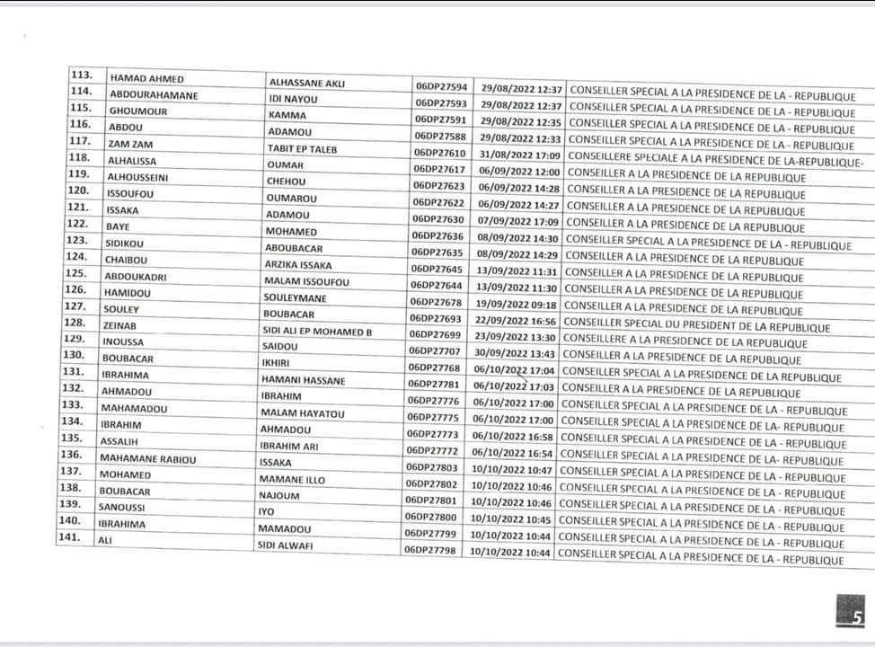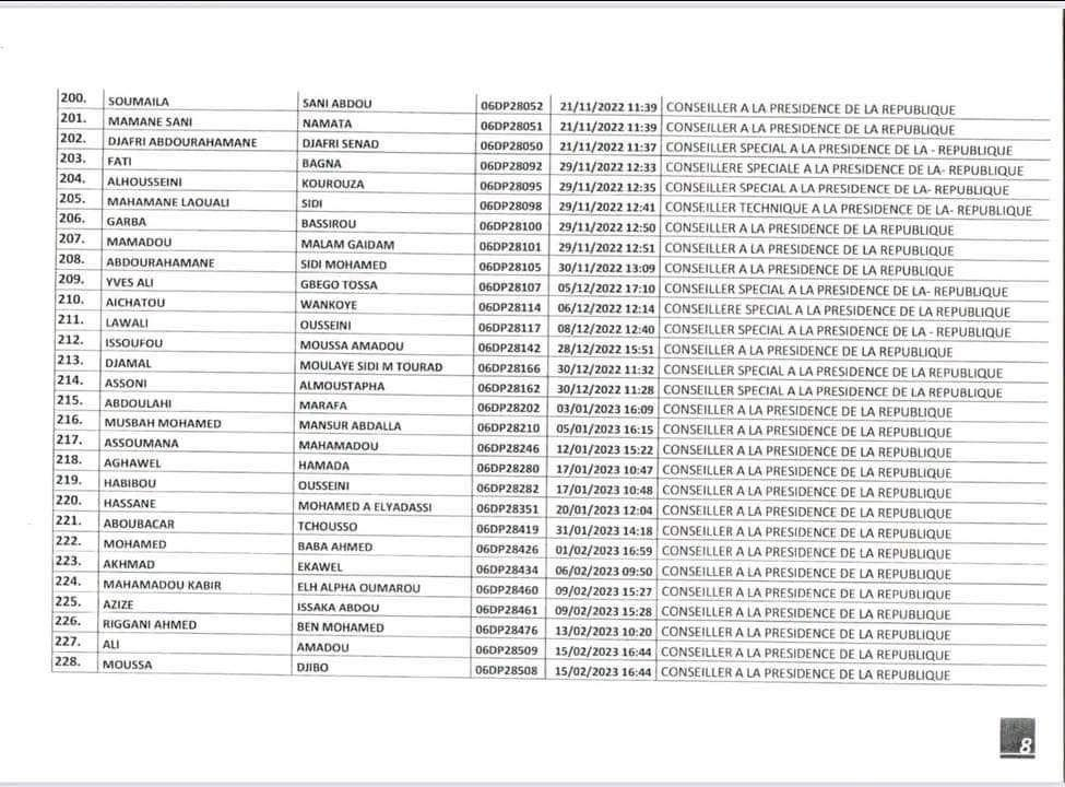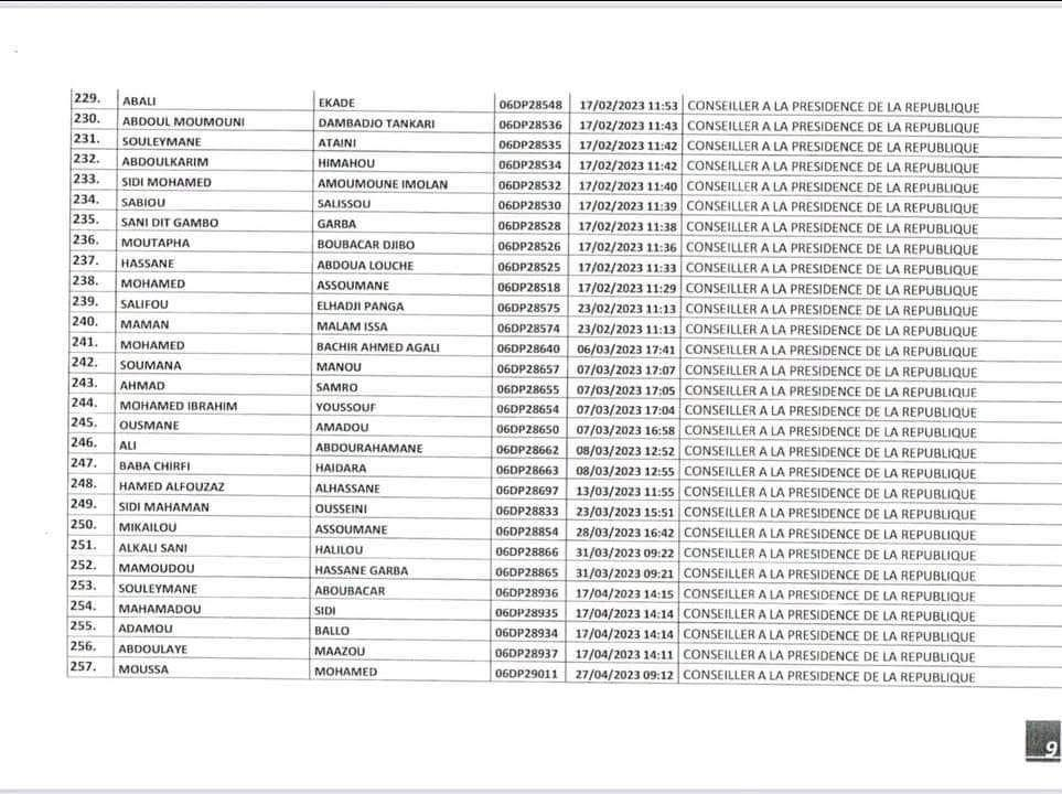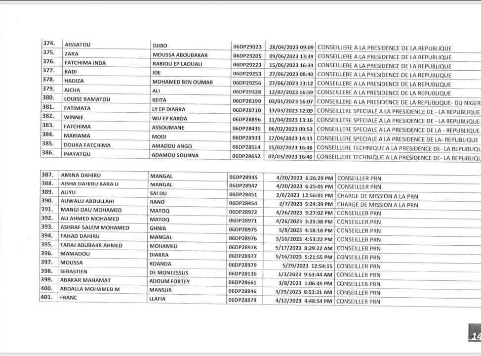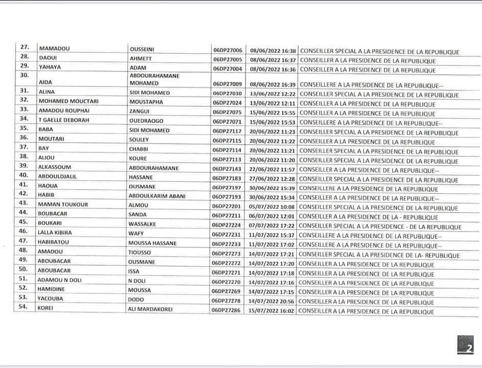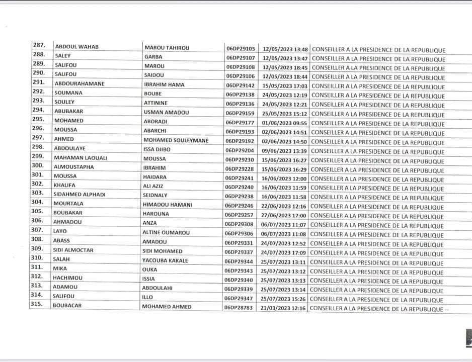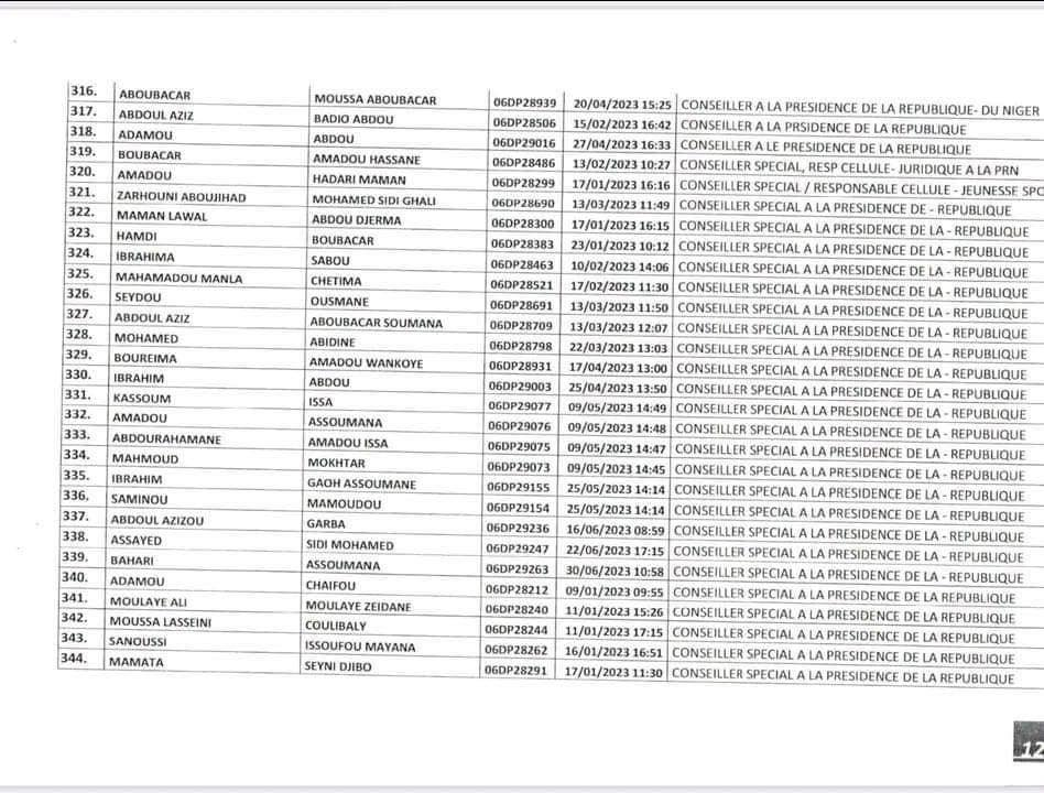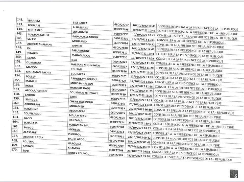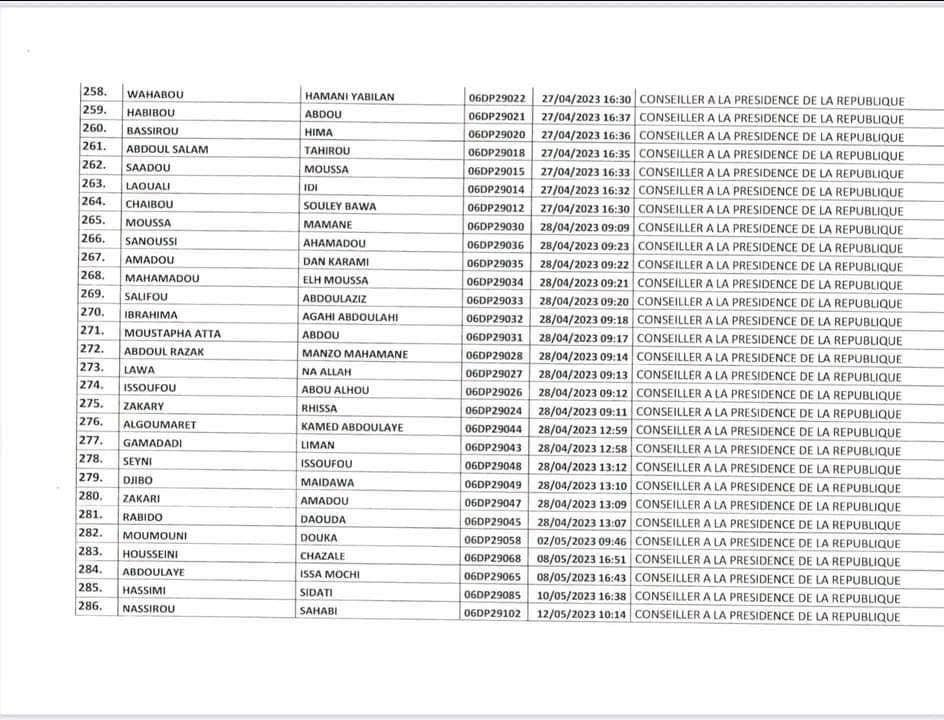 Liste complète des personnes frappées par l’annulation des passeports diplomatiques nigériens