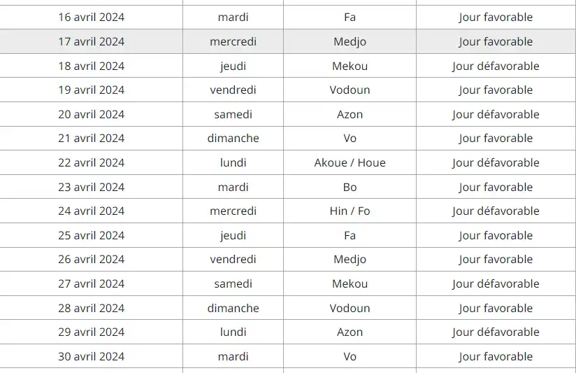 Le quatrième mois de l’année 2024 vient d’ouvrir ses portes. Et comme à l’accoutumée, la rédaction de Bénin Web TV vous propose le calendrier lunaire « Fèzan » du mois d’Avril 2024. Consultez-le lors de vos prises de décisions pour la réalisation de vos projets.