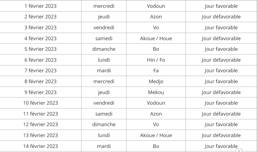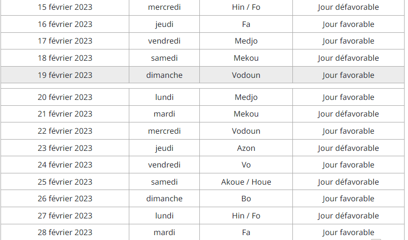 Nous voici à l’orée d’un nouveau mois, et comme nous le savons , la prise de certaines décisions nécessite la consultation de l’oracle. Cependant, si vous ne pouvez pas la faire, vous pouvez vous servir du calendrier ancestral basé sur l’apparition lunaire, communément appelé le « Fêzan ». Ce calendrier décrit l’essence de la vie de l’homme sur terre.