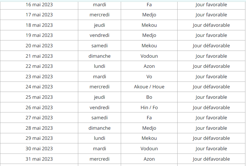 Un nouveau mois vient encore de s’ouvrir. Et comme vous le savez, la prise de certaines décisions mérite auprès de certaines personnes une consultation de l’oracle. Cependant, à défaut de pouvoir la faire, vous pouvez vous servir du calendrier lunaire Fêzan. Découvrez celle du mois de mai 2023 ci-dessous.