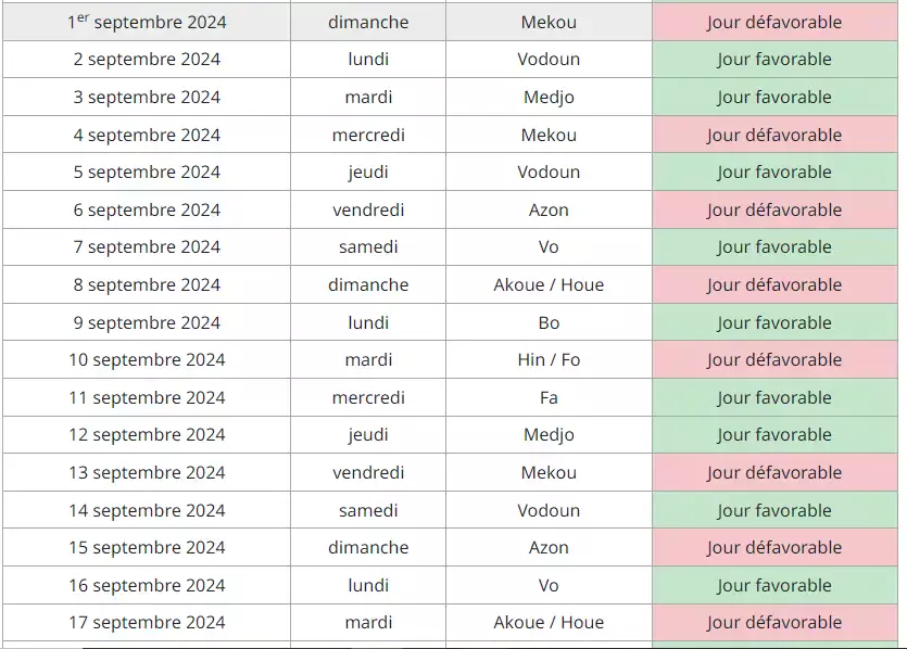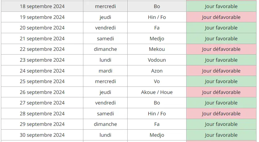 Le mois de septembre 2024 vient de s’ouvrir. Et comme d’habitude, la rédaction de Benin Web Tv vous propose le calendrier lunaire Fêzan de ce neuvième mois. Consultez-le chaque fois pour les prises de décisions entrant dans le cadre de la réalisation de vos projets.