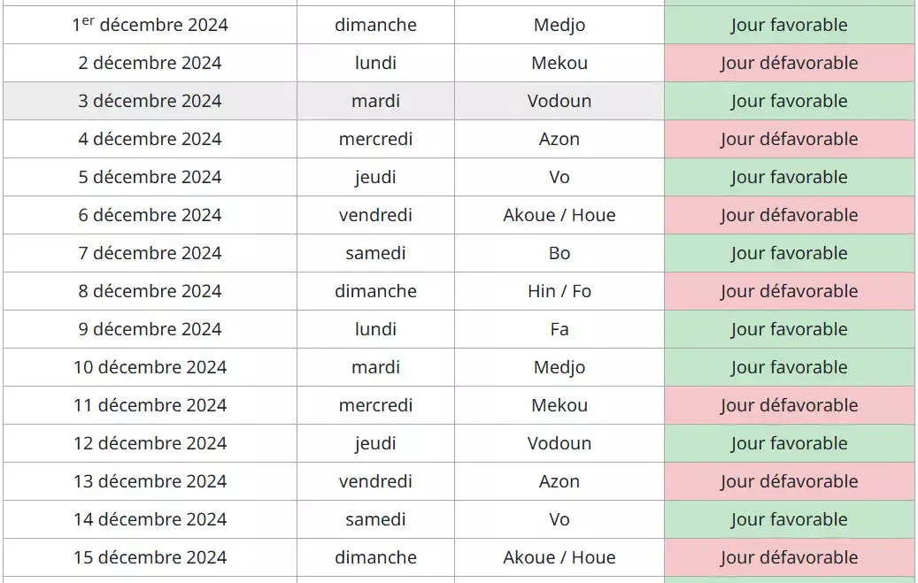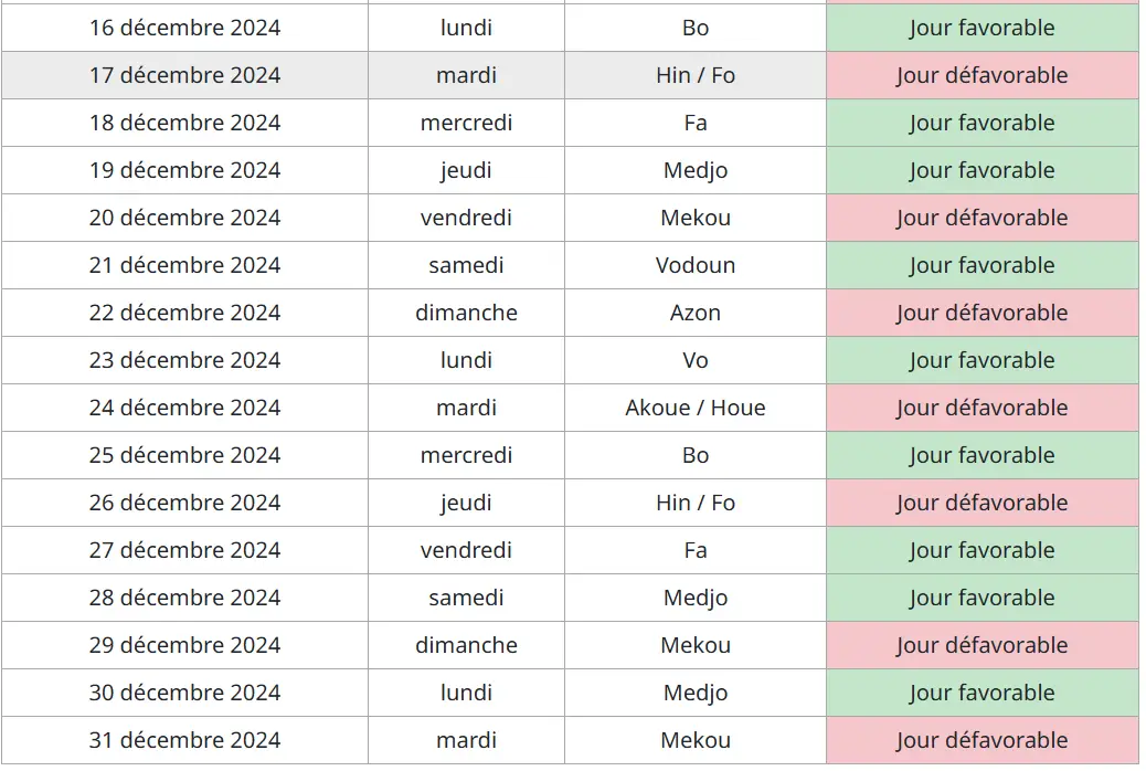 Le dernier mois de l’année 2024 vient de s’ouvrir. La rédaction de Bénin Web Tv vous propose une fois encore le calendrier lunaire connu plus sous le nom de Fêzan du mois de décembre 2024. Consultez le chaque fois que vous voulez prendre une décision pour vos projets.