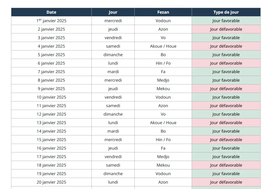 Le premier mois de 2025 a récemment gracieusement ouvert ses portes. Et comme à l’accoutumée, la rédaction de Bénin Web TV vous propose le calendrier lunaire « Fêzan » du mois de Janvier 2025. Consultez le lors de la prise de décisions pour vos projets.