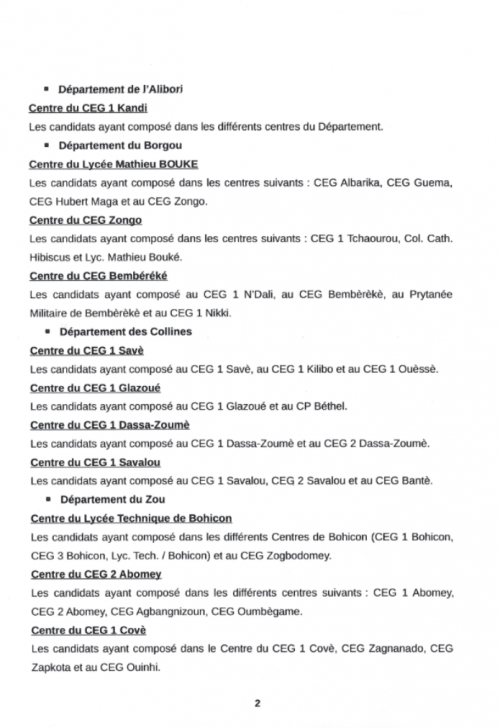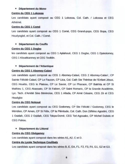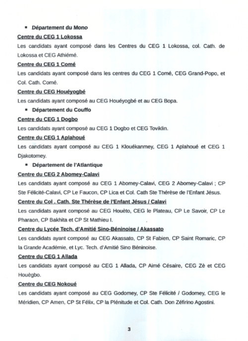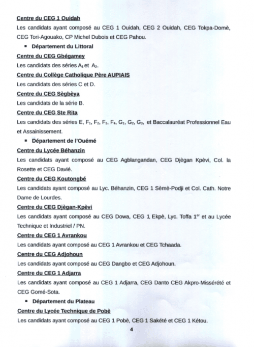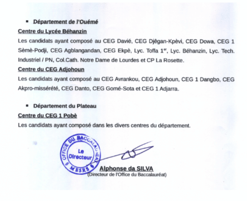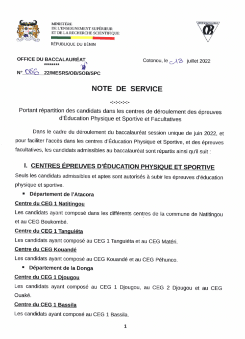 Dans un communiqué rendu public le mercredi 13 Juillet 2022, le directeur de l’office du baccalauréat, Alphonse da Silva a procédé à la répartition des candidats admissibles par centre.