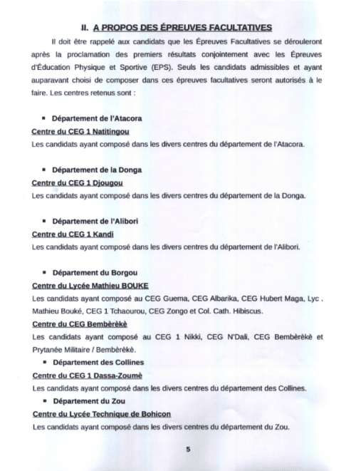 Cette répartition rendue publique par le directeur de l’office du baccalauréat, le professeur Alphonse da Silva vise à faciliter la tache aux candidats attendus pour les épreuves facultatives et les épreuves physiques et sportives.