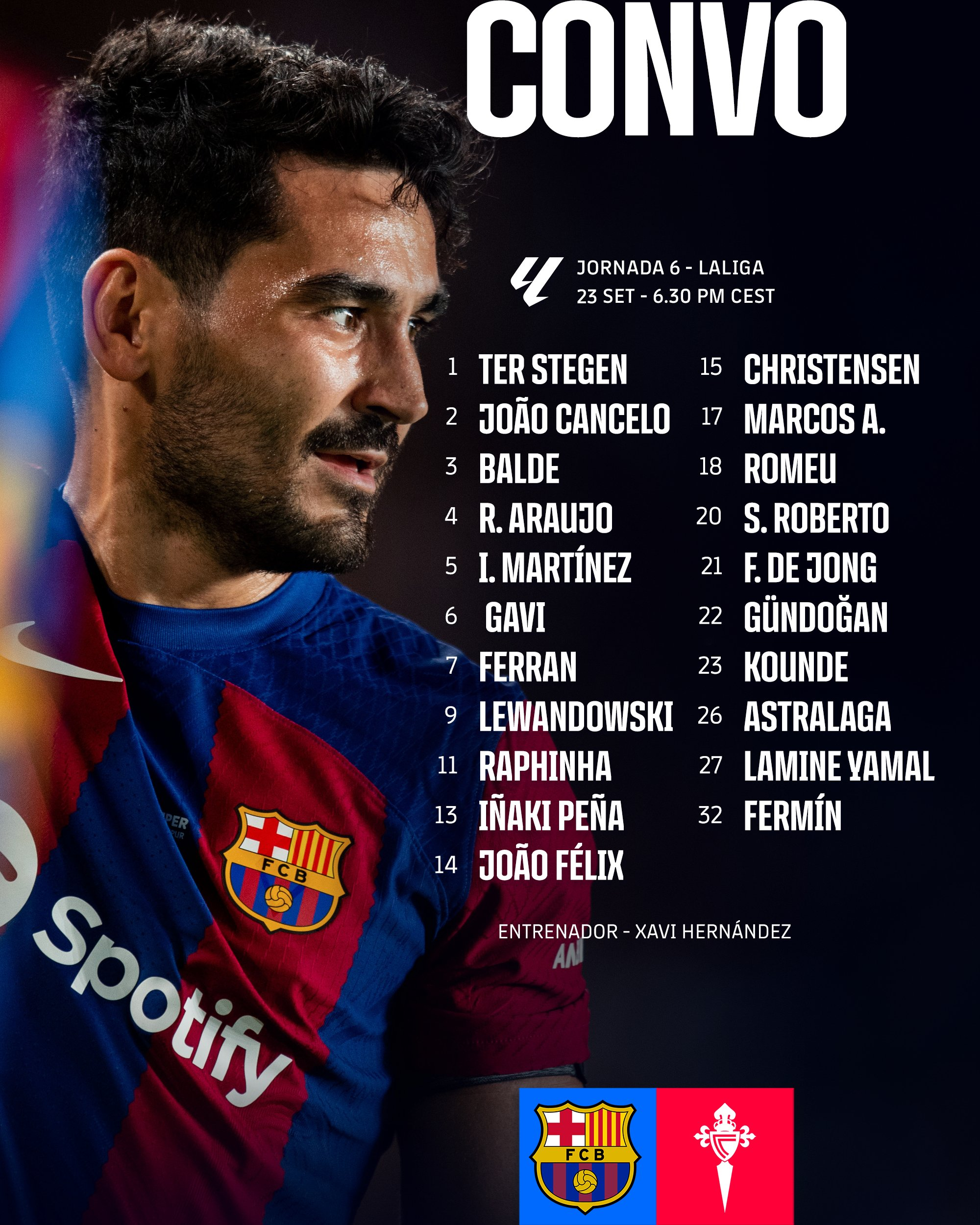 Barça: le groupe de Xavi face au Celta Vigo avec Ronald Araujo