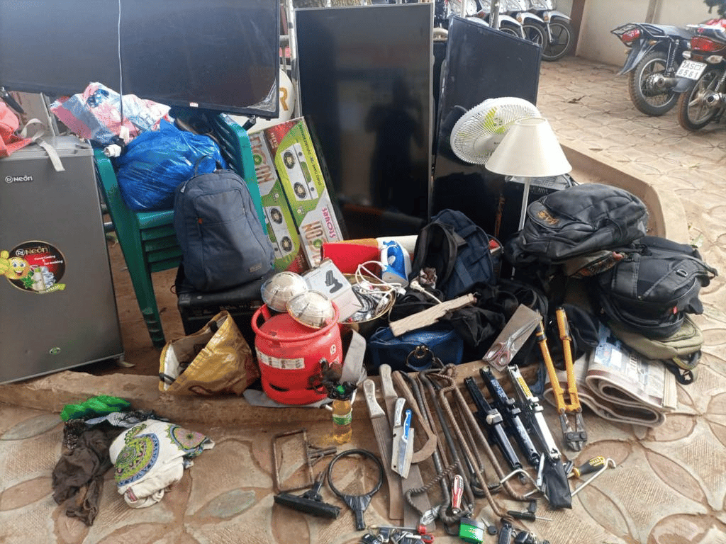 La perquisition effectués aux domiciles des intéressés a permis à la police de récupérer au total six (06) motos volées. Des sacs à dos contenant tout genre de matériels de travail ( sécateurs clics, arraches clous, pinces, tenailles, fers fabriqués qui servent à défoncer les portes, etc) ; des pièces d’identité ; des documents administratifs et passeports d’autrui ; des effets à usage domestique, ont été retrouvés aux domicile des membres du réseau de malfaiteurs.
