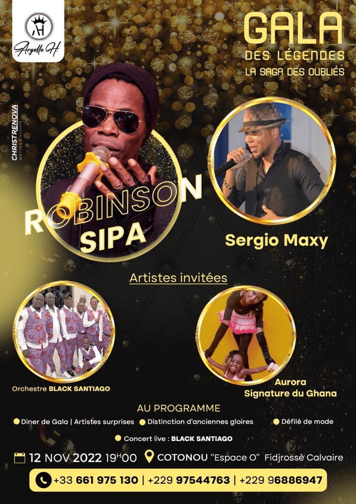 Les icônes et anciennes gloires de la musique béninoise seront célébrées de leur vivant au Bénin. Les artistes concernés sont l’orchestre mythique Black Santiago, l’emblématique Robinson Sipa, le roi du Soyoyo et le salsero béninois venu fraîchement de Paris Sergio Maxy pour ne citer que ceux-là.