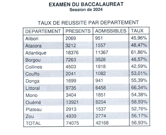 Bénin – BAC 2024 : voici le taux de réussite au plan national