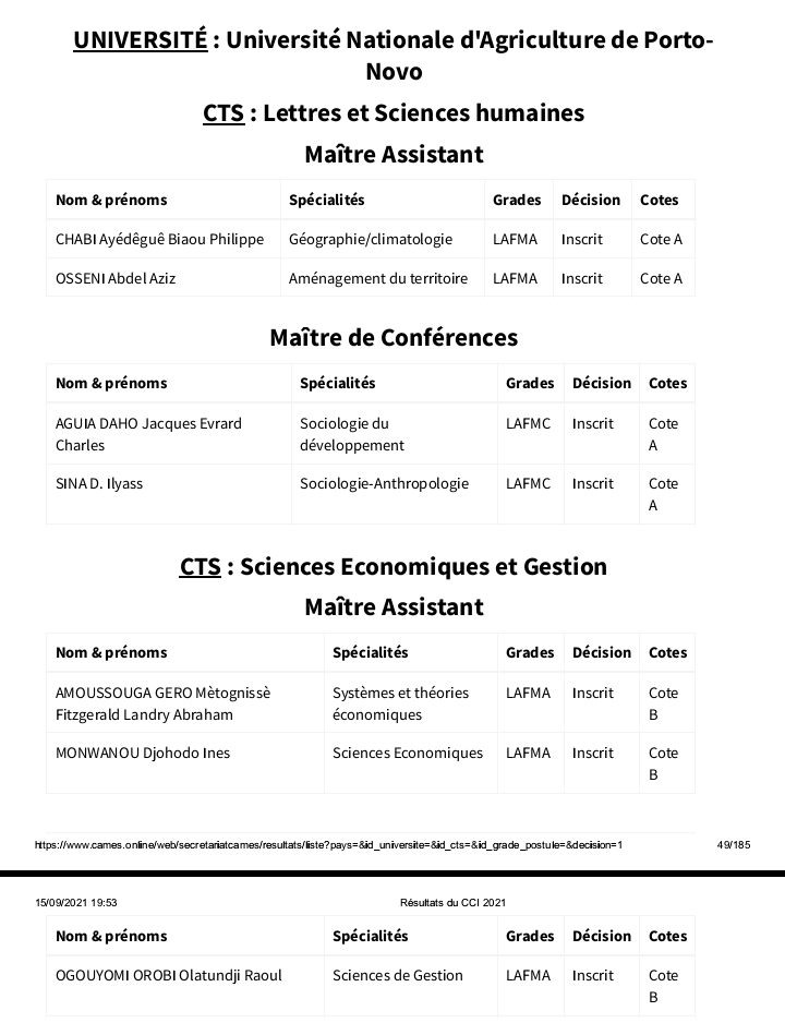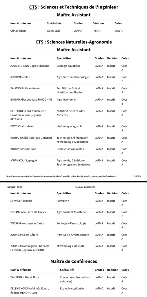 Au Bénin, l’UAC et l’UNSTIM ne sont pas les seules universités publiques ayant réussi à inscrire des enseignants aux grades supérieurs, au Conseil africain et malgache pour l’enseignement supérieur (CAMES), l’Université de Parakou (UP) et l’Université nationale d’agriculture (l’Una) comptent aussi des enseignants admis.