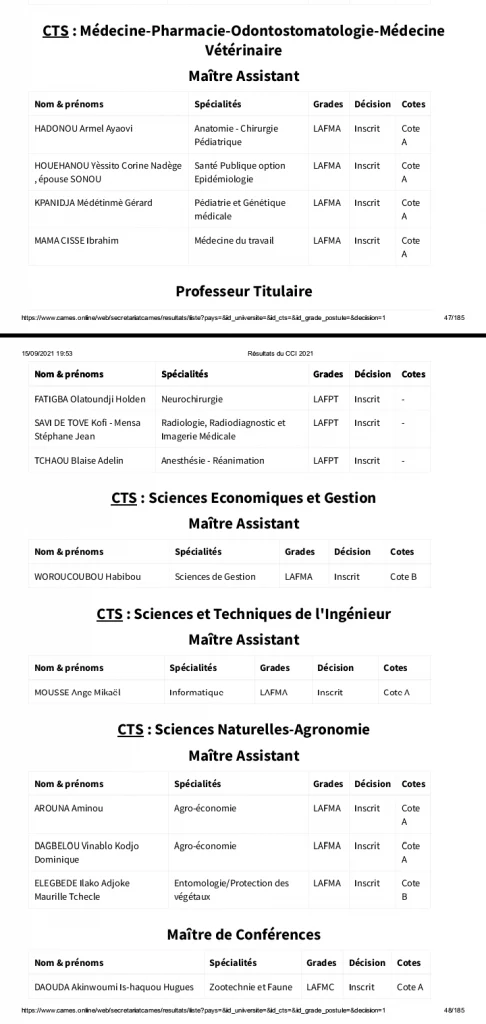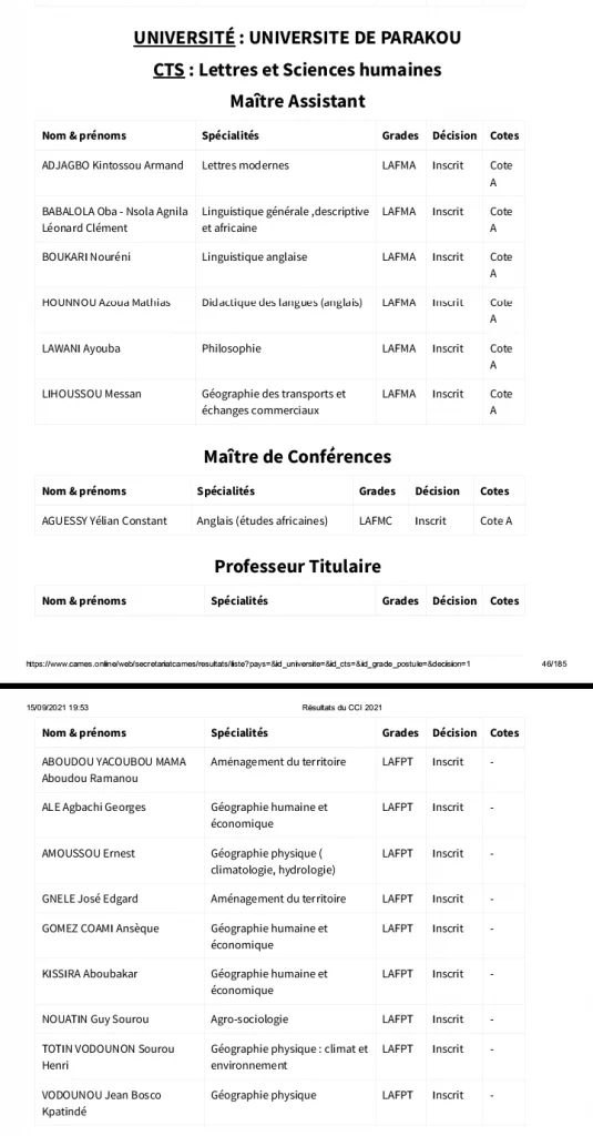 Bénin – CAMES : liste des enseignants de L’UP et L’UNA admis au grade de Professeur Titulaire