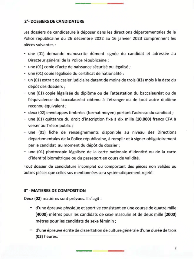 Bénin – Concours police: prorogation de la date de dépôt des dossiers de candidature