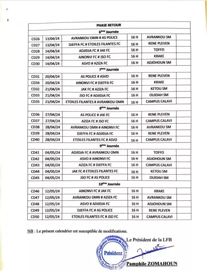 Bénin: la date du démarrage de la Ligue Pro Suite connue