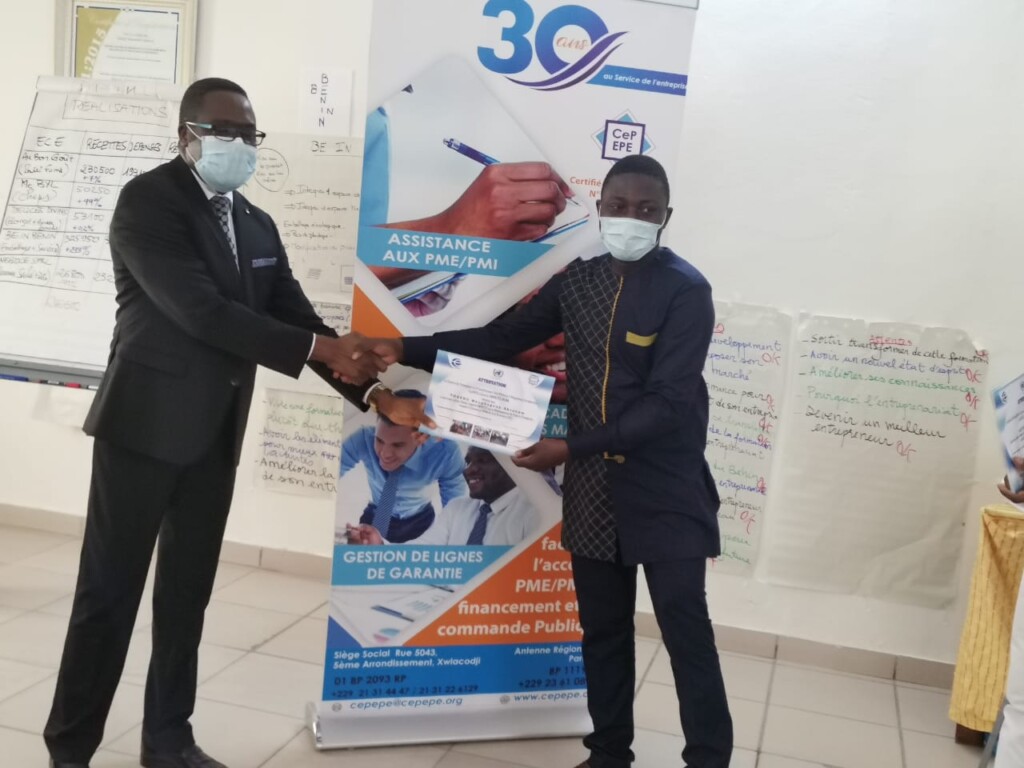 A noter le Centre de Promotion et d’Encadrement des Petites et Moyennes Entreprises (CePEPE) est une agence spécialisée de la Chambre de Commerce et d’Industrie du Bénin (CCIB). Elle a pour mission de promouvoir l’initiative privée par l’appui à la formation des entrepreneurs, la création de nouvelles entreprises, l’assistance à la réhabilitation ou au développement d’entreprises existantes. Les interventions du CePEPE couvrent toute l’étendue du territoire national et tous les secteurs d’activités et s’étendent à la sous-région, notamment le Togo, le Burkina Faso, le Mali, le Niger, le Sénégal, la Guinée , le Cameroun. Le CePEPE est certifié à la norme ISO 9001 version 2015 et est le seul centre EMPRETEC dans la sous-région Ouest africaine.