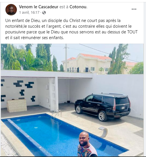 « Un enfant de Dieu, un disciple du Christ ne court pas après la notoriété, le succès et l’argent, c’est au contraire elles qui doivent le poursuivre parce que le Dieu que nous servons est au dessus de tout et il sait rémunérer ses enfants », a écrit le gendre du comédien ivoirien Gohou Michel le 1er avril 2023.