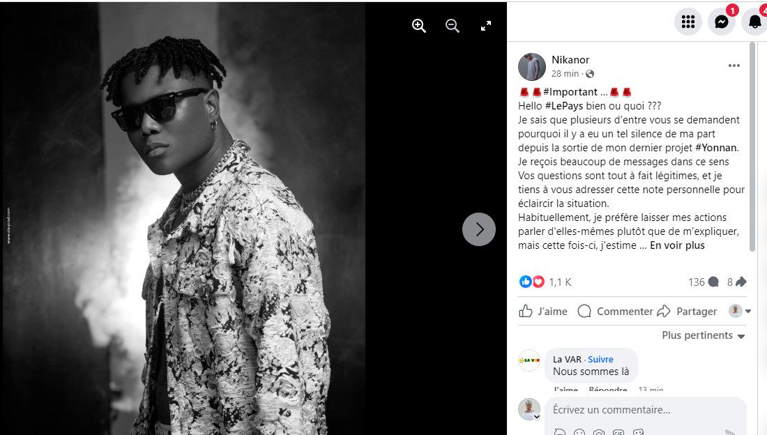 Nikanor, artiste chanteur béninois très apprécié du public pour sa voix unique et sa capacité à fusionner les genres musicaux, a promis un nouveau chapitre dans sa carrière musicale dans une publication sur sa page Facebook.