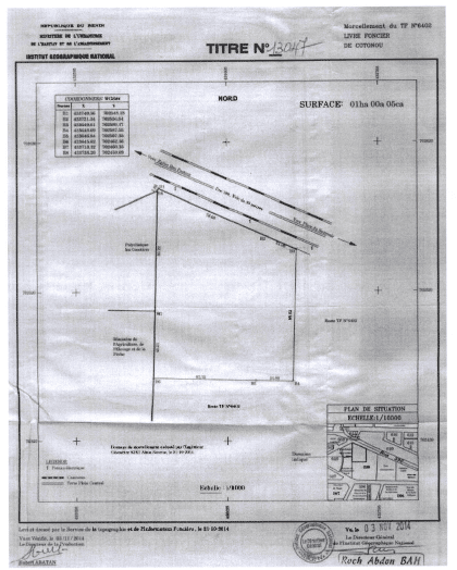 Le gouvernement a affecté un domaine à l’Ambassade de la Fédération de Russie près le Bénin. Ledit domaine est situé à Cotonou et objet du titre foncier (TF) 13047.