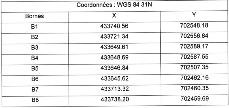 Les coordonnées du domaine attribué sont présentées dans le tableau ci-dessous.