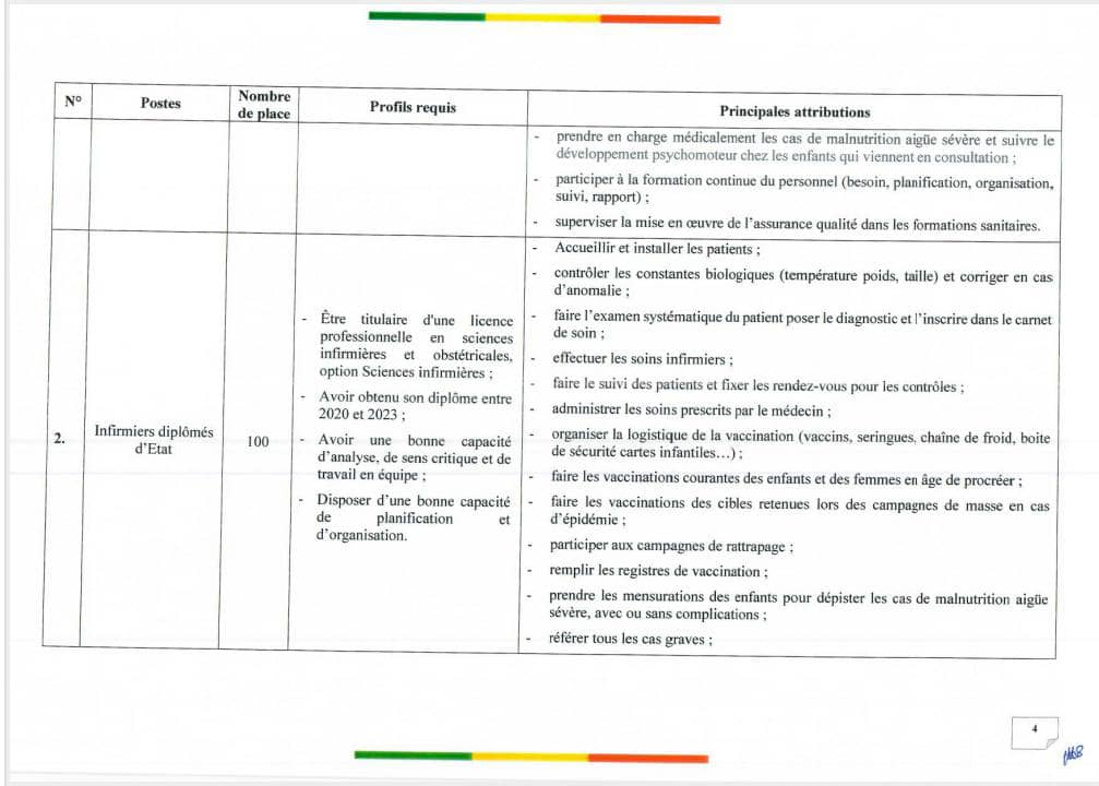 Le recrutement s’inscrit dans le cadre de la mise en œuvre du projet « combler les écarts » de la Banque Islamique de Développement. 550 jeunes professionnels de santé seront recrutés, à raison de 100 Infirmiers diplômés d’Ếtat ; 100 Sages-femmes d’État ; 150 Aides-soignantes et aides-soignants et 200 Médecins généralistes.