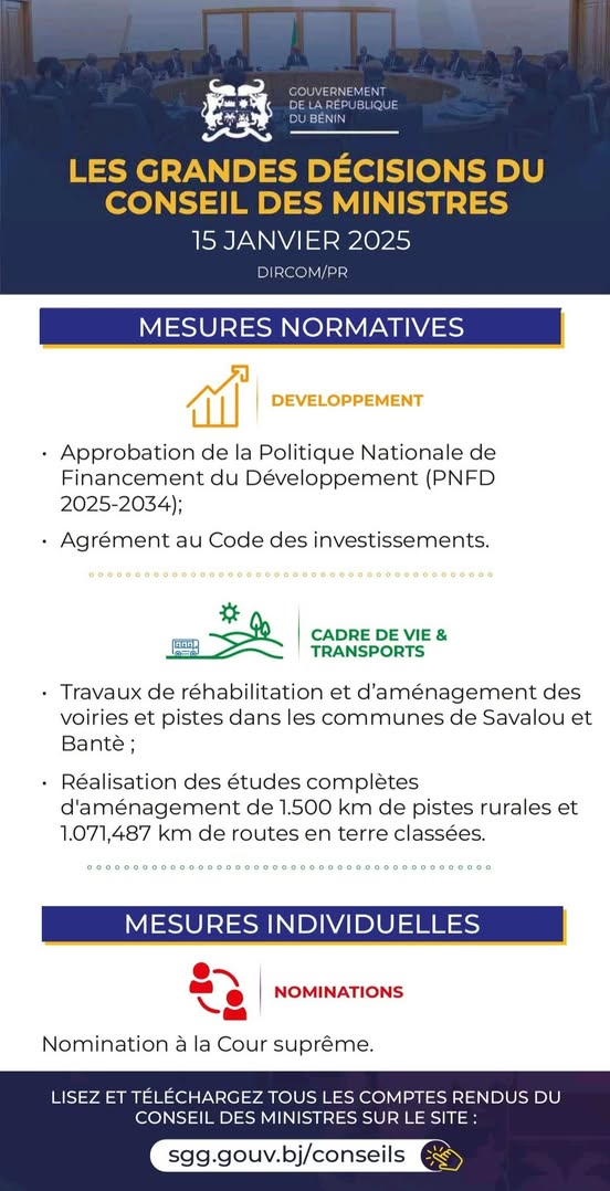 Bénin: les grandes décisions du conseil des ministres de ce mercredi 15 janvier