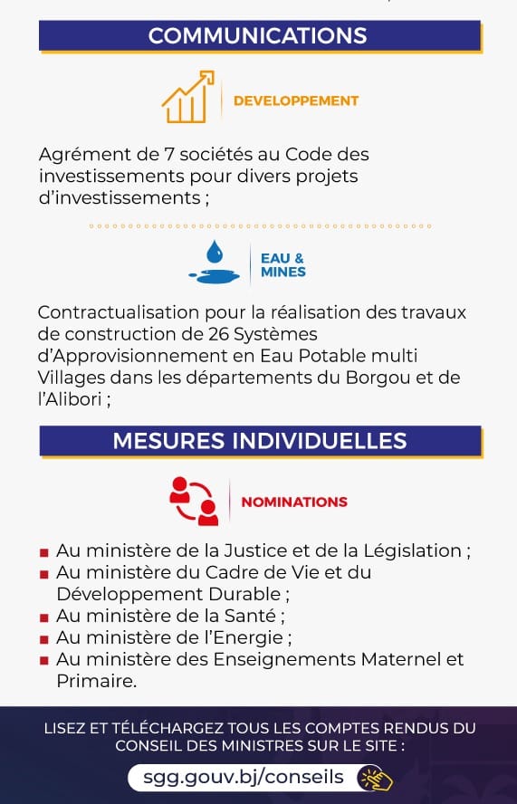 Bénin: les grandes décisions du Conseil des ministres du 02 novembre 2022