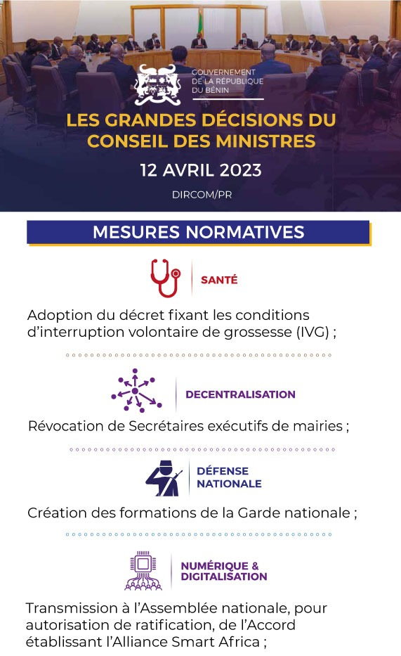 Bénin: les grandes décisions du Conseil des ministres du 12 avril 2023