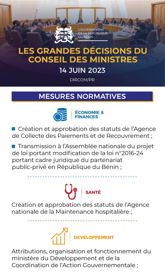 Bénin: les grandes décisions du Conseil des ministres du 14 juin 2023