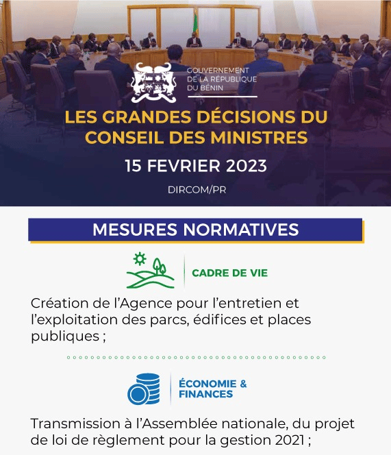 Bénin: les grandes décisions du Conseil des ministres du 15 février 2023