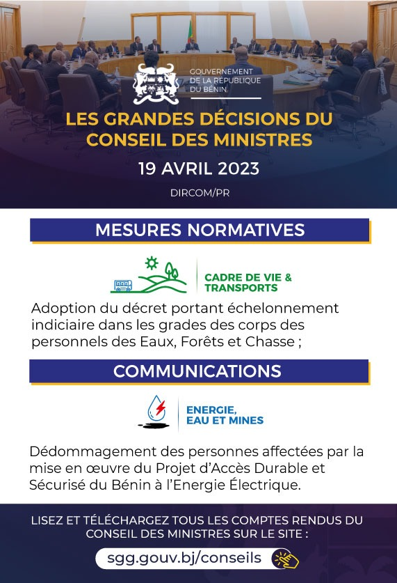 Bénin: les grandes décisions du Conseil des ministres du 19 avril 2023