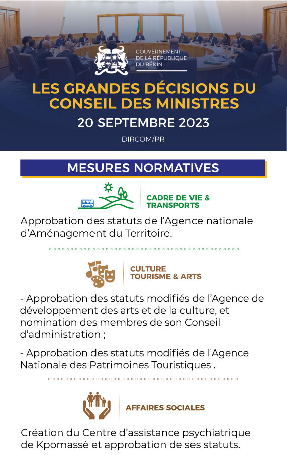 Bénin: les grandes décisions du Conseil des ministres du 20 septembre 2023
