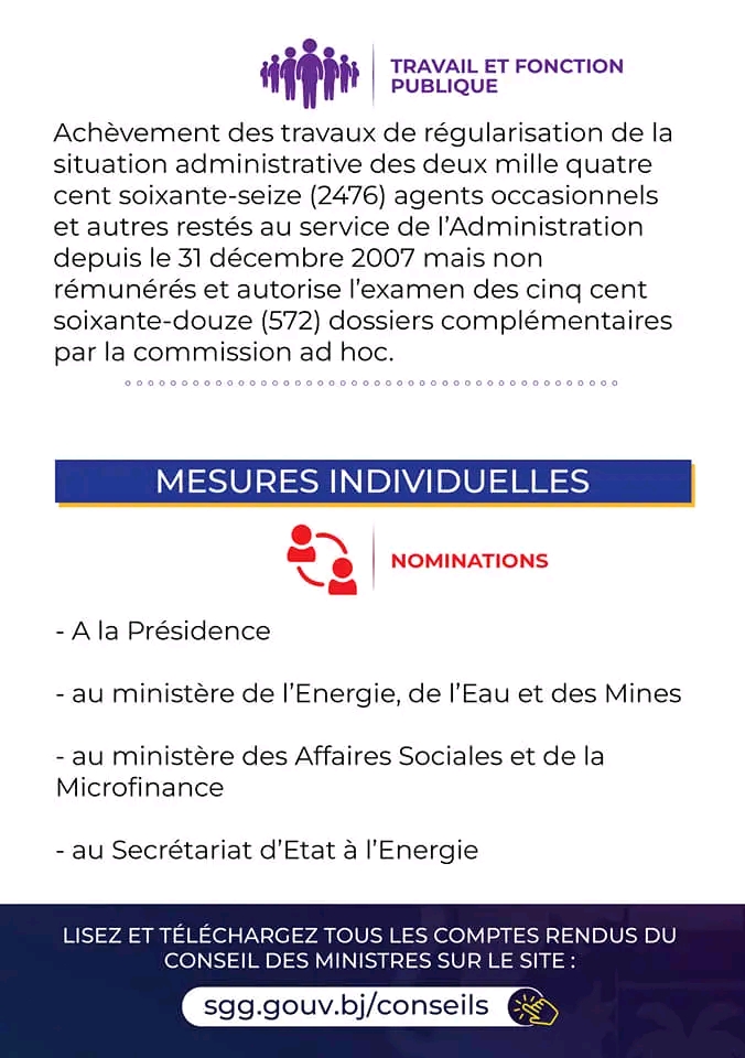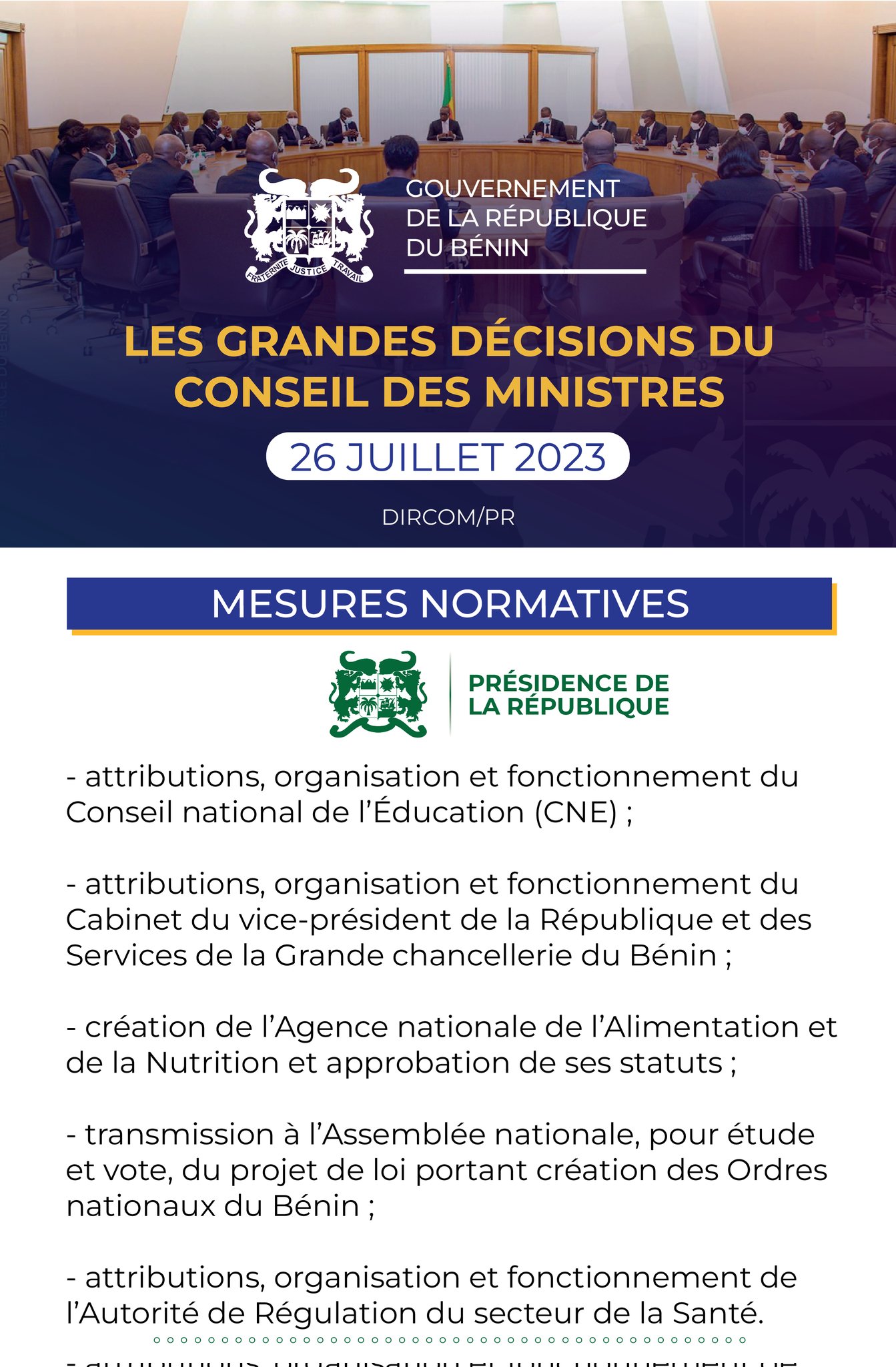 Bénin: les grandes décisions du Conseil des ministres du 26 juillet 2023