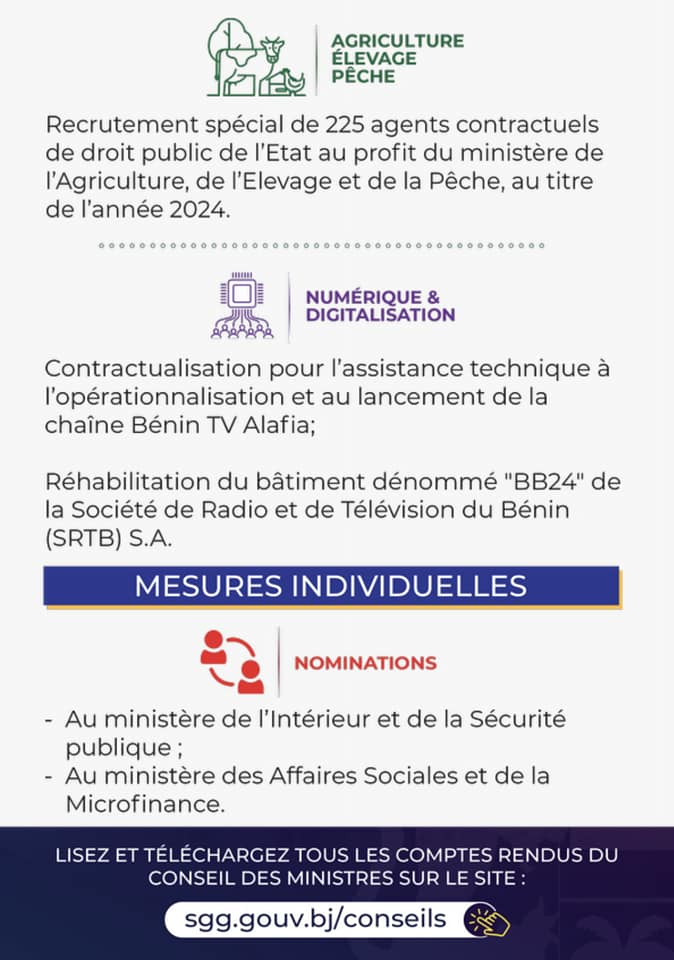 Bénin: les grandes décisions du conseil des ministres du 26 juin 2024