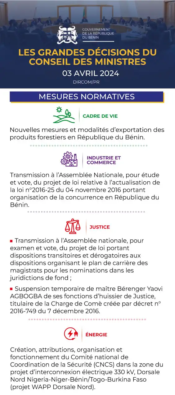 Bénin : les grandes décisions du conseil des ministres du 3 avril 2024