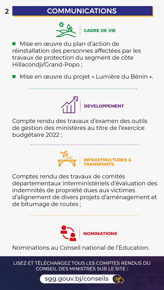 Bénin: les grandes décisions du Conseil des ministres du 4 mai 2022