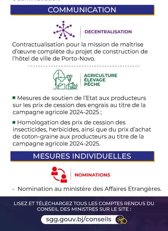 Bénin: les grandes décisions du conseil des ministres du mercredi 17 avril 2024