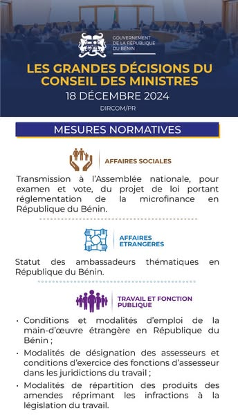 Bénin: les grandes décisions du conseil des ministres du mercredi 18 décembre