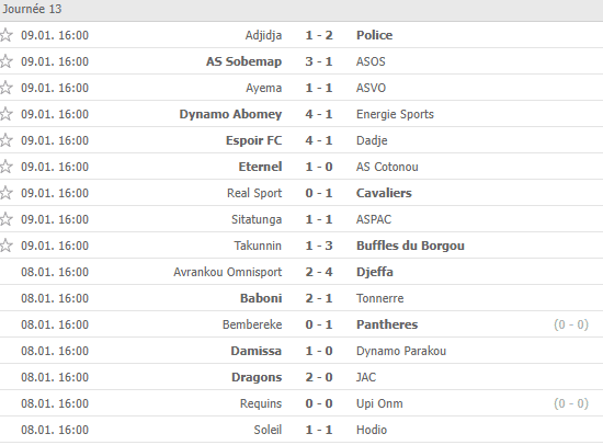 Bénin Ligue Pro: pluie de buts entre Avrankou et Djeffa, Buffles serein contre Takunnin, tous les résultats de la 13e journée