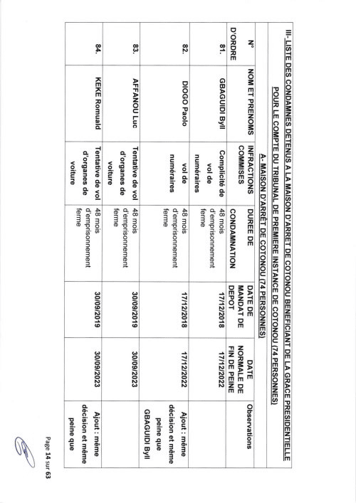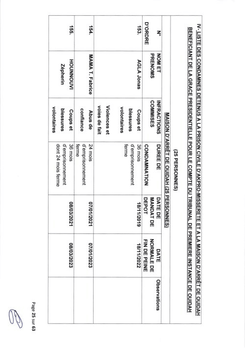 Bénin: liste des 350 prisonniers graciés par Patrice Talon