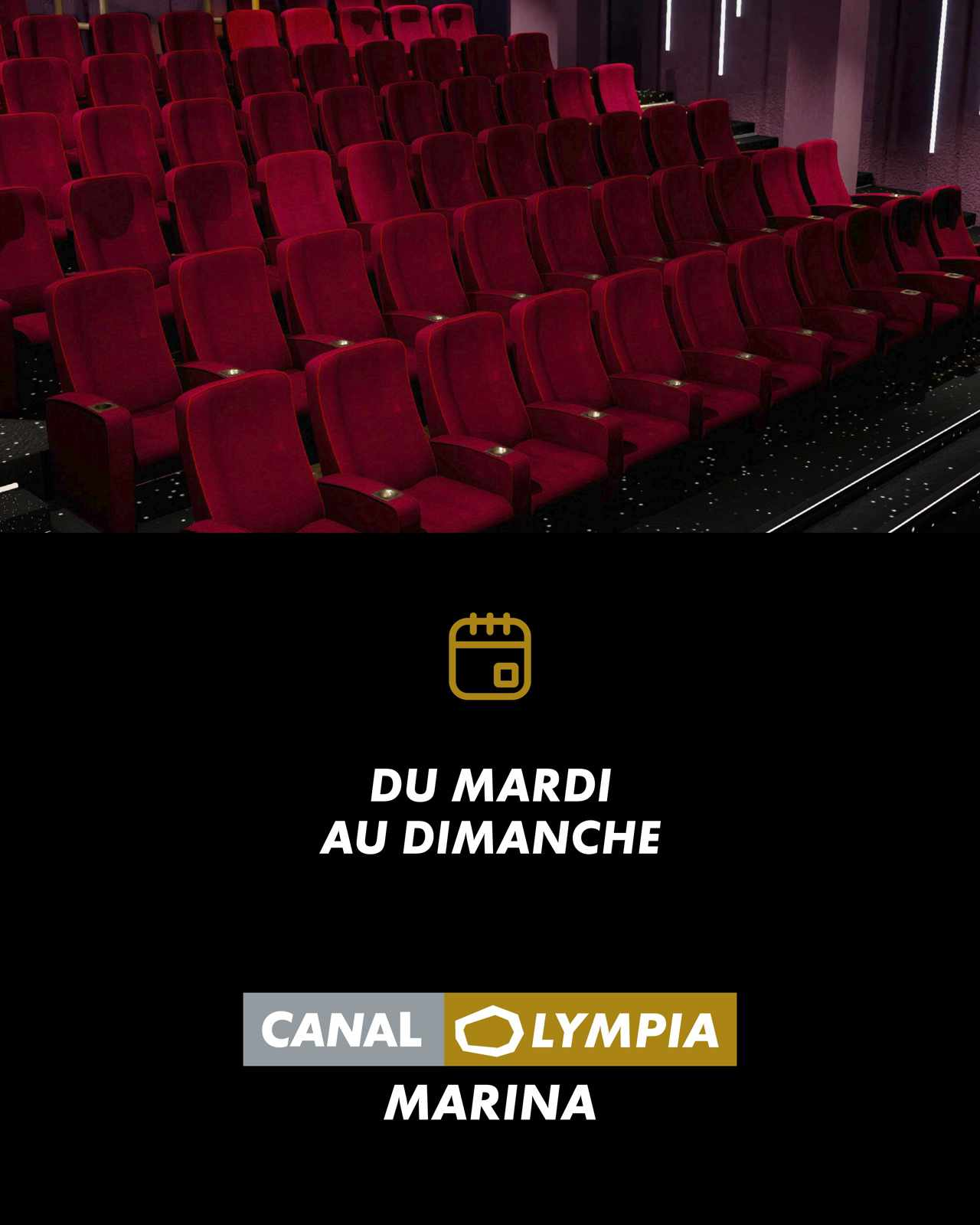 CanalOlympia Marina propose une programmation riche. Du mardi au dimanche, jusqu’à 40 séances par semaine seront proposées pour permettre aux cinéphiles de découvrir les meilleurs blockbusters, les grands classiques du cinéma et les films d’auteur.