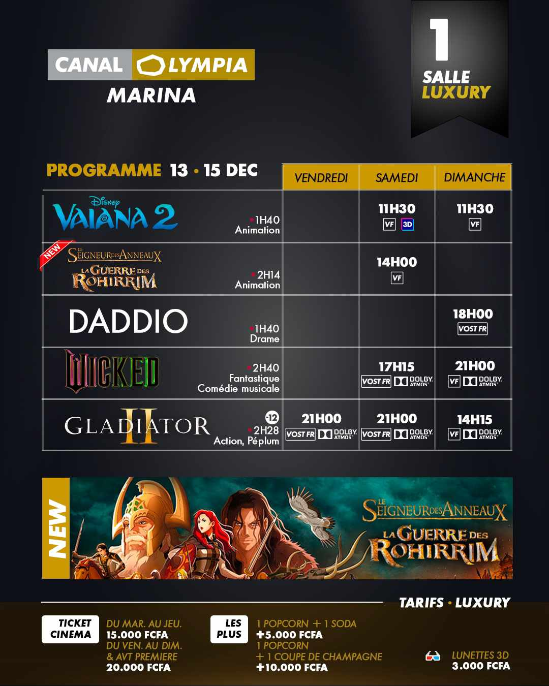 Déjà le vendredi 13 décembre 2024, à partir de 21 heures, les premiers faisceaux ont illuminé les écrans. Alors, pour illuminer vos sorties de fin d’année, profitez d’une programmation riche en action et en émotions.
