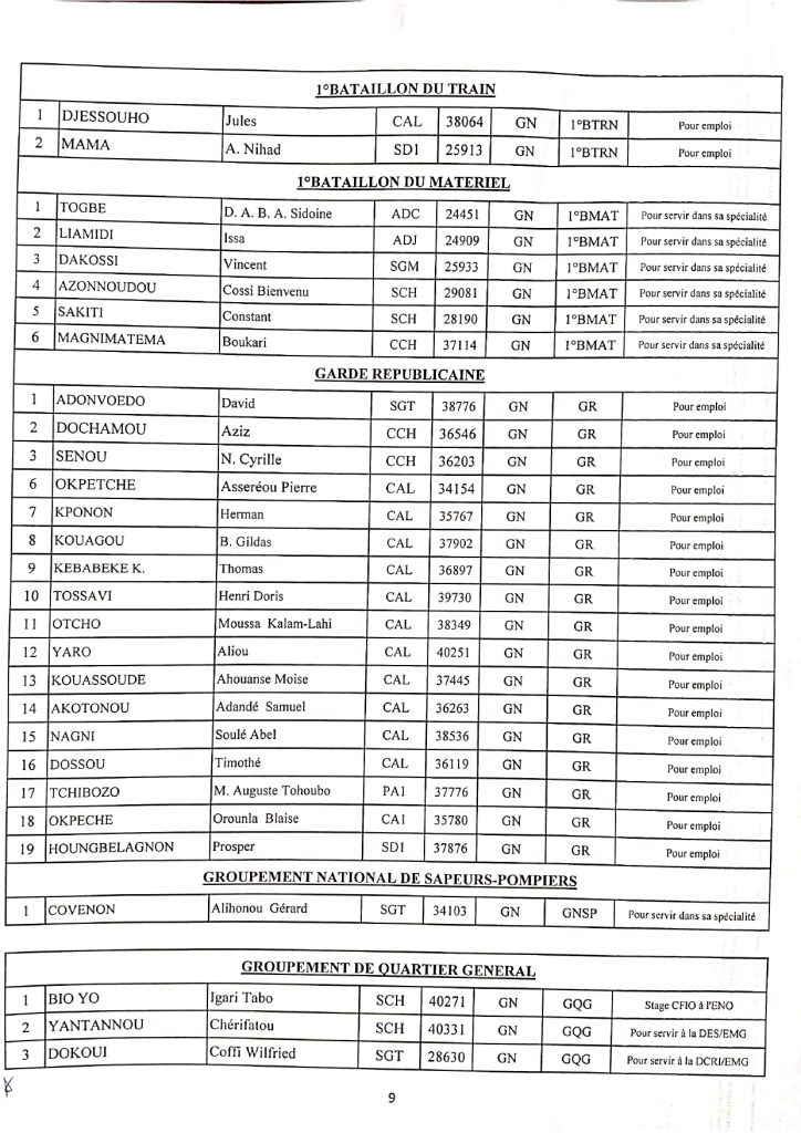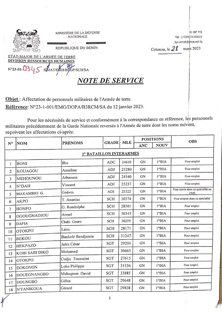 Par note de service en date à Cotonou du mardi 28 mars 2023, le chef d’Etat-major de l’armée de terre, Général Abou Issa a procédé plusieurs affectations au sein du personnel militaire.