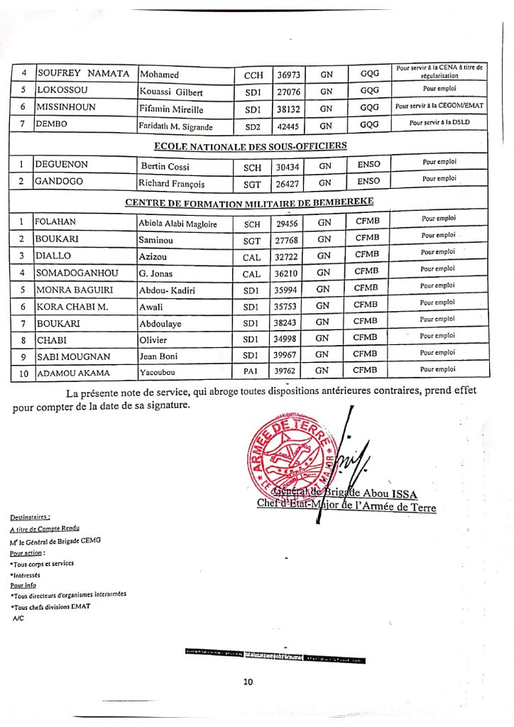 Selon la note de service signée en personne par le chef d’Etat-major de l’armée de terre, Général Abou Issa, ces affectations ont été opérées pour les nécessités du service.