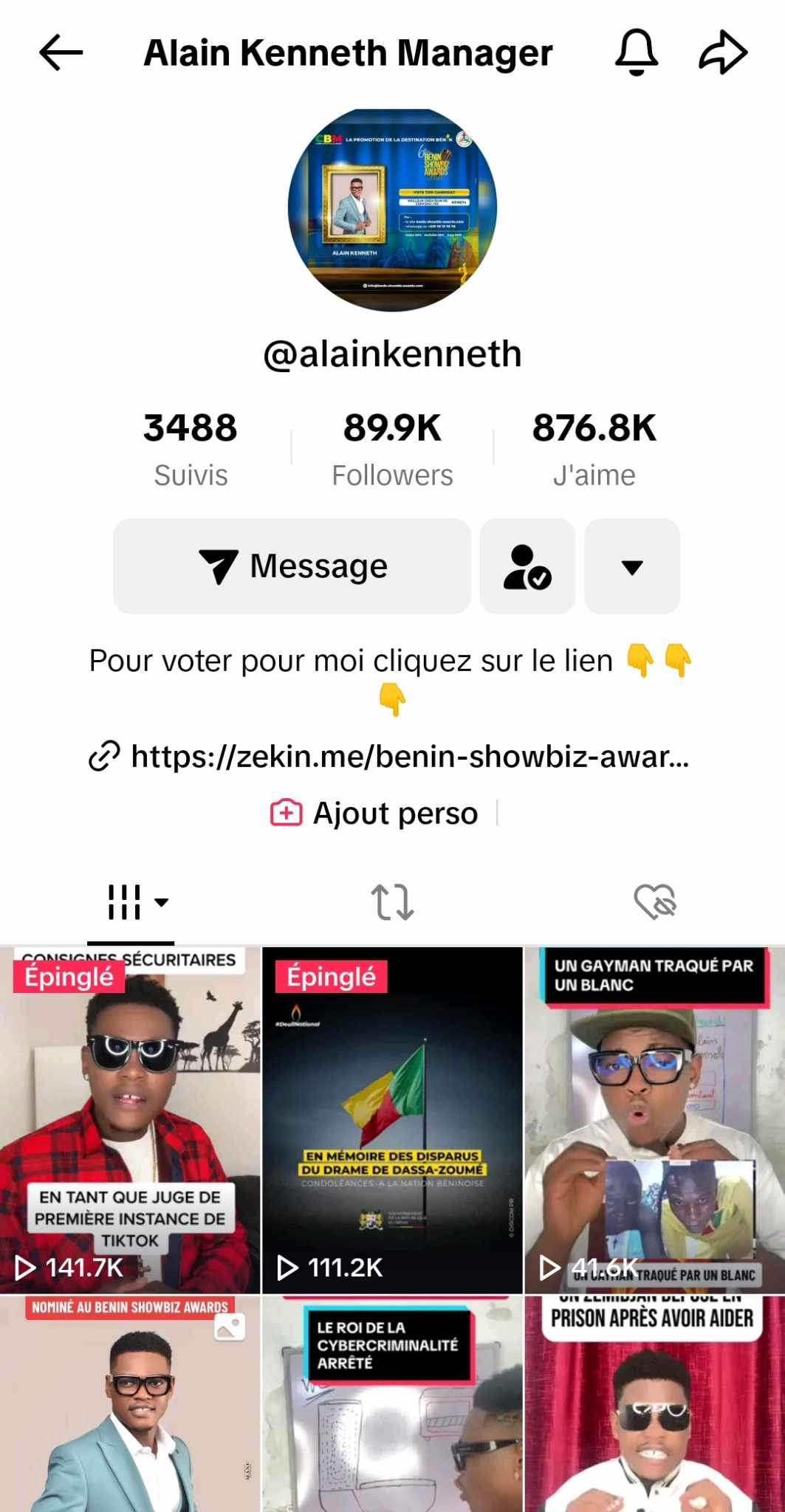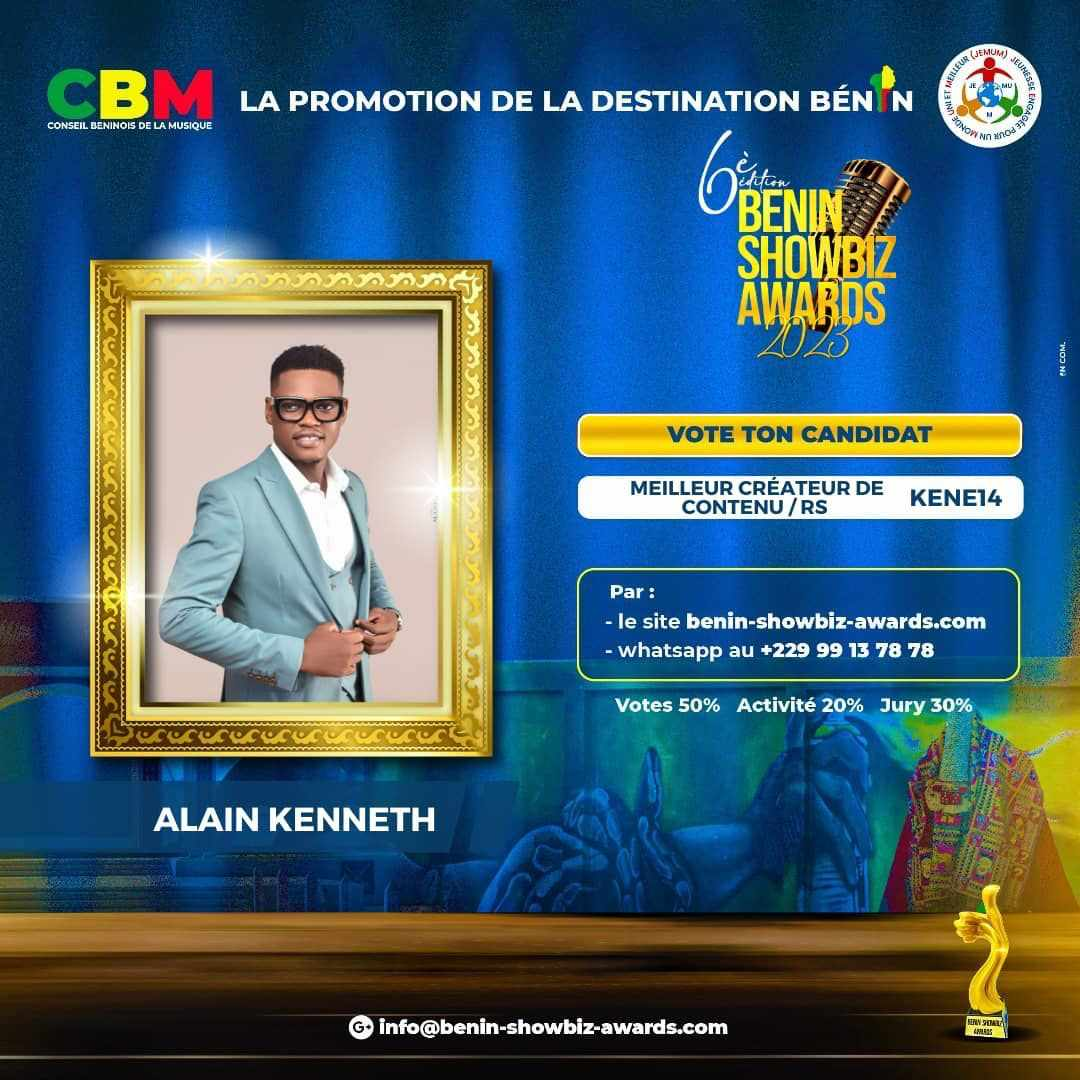 Alain Kenneth Adjadohoun, connu pour ses vidéos captivantes et son contenu intéressant a été nominé dans la catégorie du meilleur créateur de contenu des Bénin Showbiz Awards 2023. Sa nomination a suscité l’enthousiasme parmi les tiktokeurs et les tiktokeuses qui ont dores et déjà exprimé leur soutien et leurs félicitations sur les réseaux sociaux.
