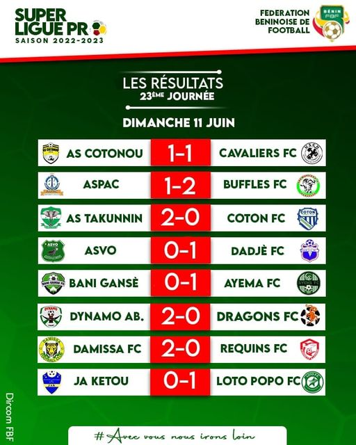 Dans les autres rencontres de ce chapitre, Coton FC est allé s’incliné sur la pelouse de l’AS Takunnin. Les poulains de l’entraîneur Victor Vzunka étaient sans doute encore dans la célébration de leur nouveau titre et ont perdu de vue l’importance du match. L’AS Takunnin en a profité et a terrassé les champions du Bénin sur le score de 2-0, mettant ainsi fin à leur invincibilité depuis le début de la phase retour de la Super Ligue Pro.