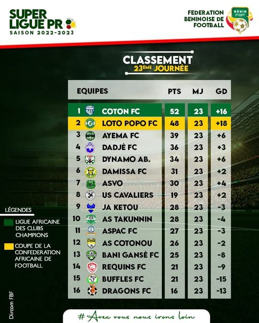 Déjà assuré de finir deuxième du championnat, Loto-Popo a fait de son côté le minimum face à la Jeunesse athlétique de Kétou (1-0). Une victoire anecdotique pour les hommes de Mathias Déguénon, qui disputeront les qualifications pour la Coupe de la Confédération de la CAF.