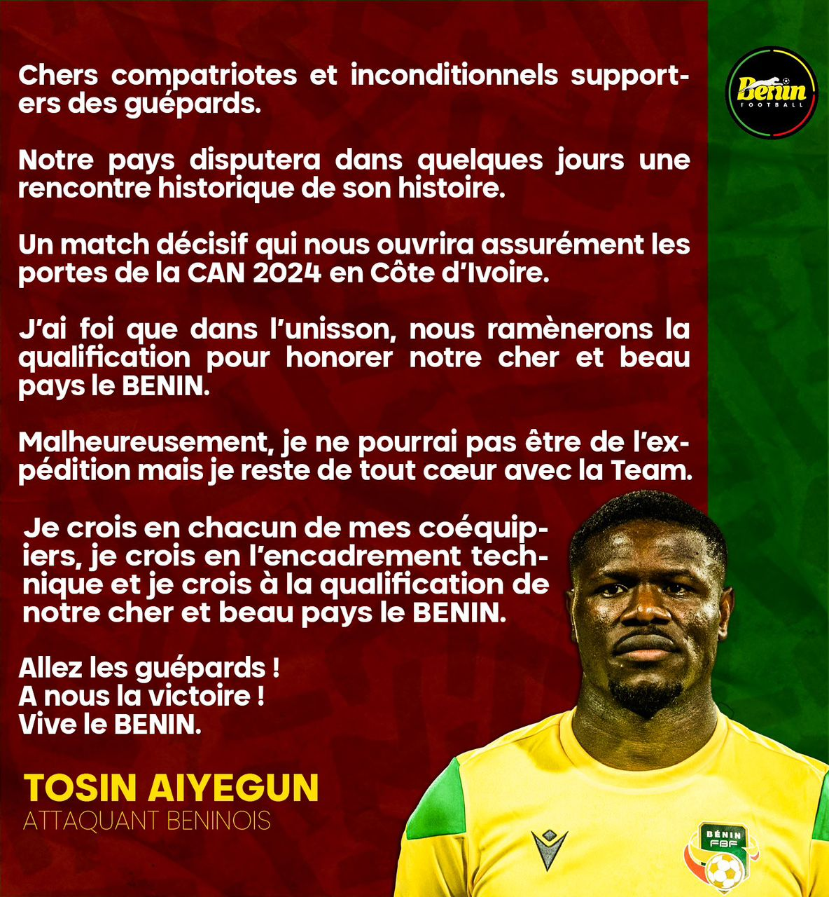 Bénin: Tosin Aiyegun réagit à son forfait face au Mozambique