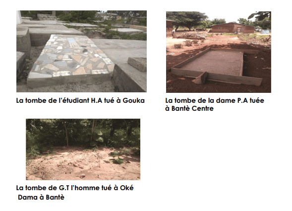 Dans leurs investigations le président Clément Capo-Chichi et son équipe ont pu retrouver les tombes de trois personnes décédées au cours des violences électorales. Il s’agit des tombes de l’étudiant H.A tué à Gouka, de dame P.A tuée à Bantè Centre et du sieur G.T tué à Oké Dama (Bantè).