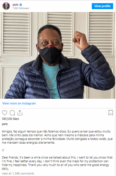 « Je voudrais vous dire que je vais bien, que je me sens mieux chaque jour. Je pense que même le masque que je porte ne peut pas cacher mon bonheur. », a écrit l’ancienne star de Santos.