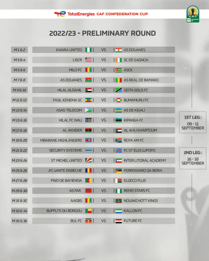 La CAF a fait cette annonce dans un communiqué publié sur son site officiel. « La saison 2022/23 débutera le vendredi 09 septembre 2022 avec les tours préliminaires de la Ligue des champions CAF et de la Coupe de la Confédération. En Ligue des champions, 58 clubs espèrent détrôner les champions d’Afrique du Wydad Athletic Club du Maroc. Dans la Coupe de la Confédération, 50 clubs au total ont été confirmés. Ils se disputeront les grands honneurs pour renverser les champions actuels RS Berkane », lit-on sur Cafonline.com.